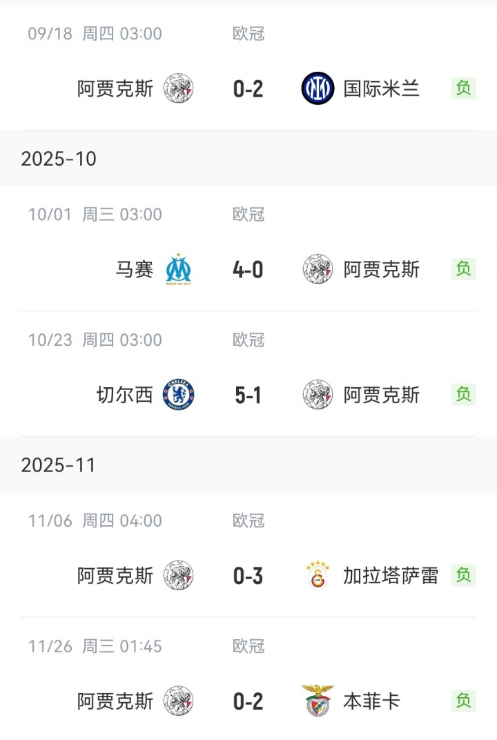 11月26日讯 在凌晨的一场欧冠联赛阶段比赛中,阿贾克斯主场0-2不敌本菲卡,本菲卡拿到了本赛季欧冠首胜,而阿贾克斯还在络续他们不堪的战绩。 本赛季阿贾克斯在欧冠走漏晦气,前5轮比赛他们全败,丢16球仅打入1球,基本不错宣告无缘淘汰赛,他们剩下的3个敌手是卡拉巴赫、比利亚雷亚尔和奥林匹亚科斯,阿贾克斯的贪图即是能拿下一场顺利。
