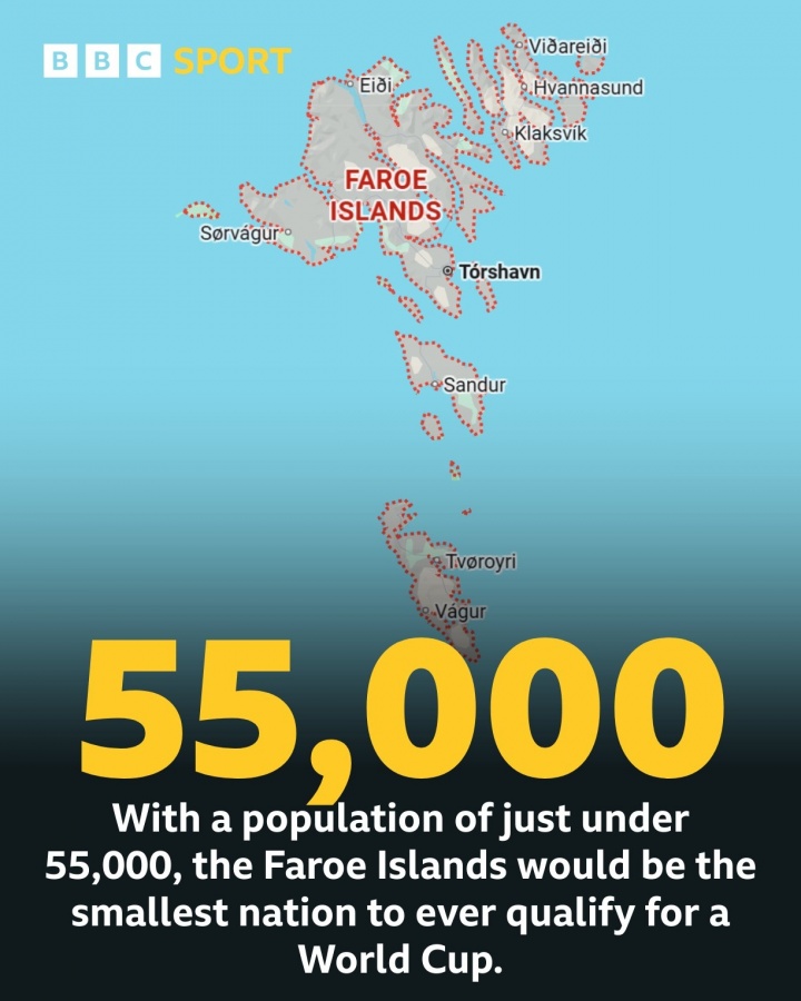 10月13日讯 世初赛欧洲区L组,天下排行第136的法罗群岛接连爆冷,先后打败天下第80黑山和天下第39捷克,在还剩1场的情况下,仍有望晋级附加赛! 本月世欧预,法罗群岛在主场辨别以4-0横扫黑山、2-1力克捷克,拿来世初赛3连胜,7轮4胜3负12分排小组第三,还剩1场仅逾期小组第二捷克1分,仍有晋级附加赛的但愿。 11月世初赛,捷克将主场对阵小组垫底的直布罗陀,法罗群岛则将客场对阵小组第一克罗地亚。法罗群岛此前从未在职何赛事的预选赛中取得2场比赛以上,而本届他们已有4个胜场,如今他们还需要一个遗址。 世欧预附加赛中,12个小组第二将与4支欧国联收获最佳的球队(世欧预排行小组前二以外)角逐4张天下杯门票,16支球队分红4组进行单场淘汰赛,最终胜者出线。 法罗群岛是丹麦王国的外洋自治领地。地舆位置介乎挪威海和北大欧好意思中间,处于挪威到冰岛之间距离一半的位置。 法罗群岛陆大地积1399平常公里,由17个有东谈主岛和多少个无东谈主岛构成。法罗群岛东谈主口为5.472万,若能出线,将成进入天下杯的最小国度。 |