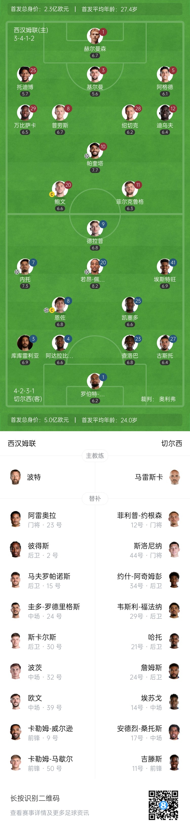 第23分钟,查洛巴抢断帕奎塔,若昂-佩德罗传中,后点内托包抄破门!切尔西2-1反超西汉姆联↓ 第34分钟,切尔西前场断球,埃斯特旺衔接过东谈主下底横扫门前!恩佐包抄破门!切尔西3-1卓绝西汉姆联↓ 【比赛焦点蓦然】 第13分钟,若昂-佩德罗倒在西汉姆联禁区内,不外主裁默示莫得问题↓ 第25分钟,古斯托脚部有些不适,但并无大碍,陆续比赛↓ 第45+4分钟,鲍文禁区内尝试倒钩,力量小了↓ 【两边威望】
