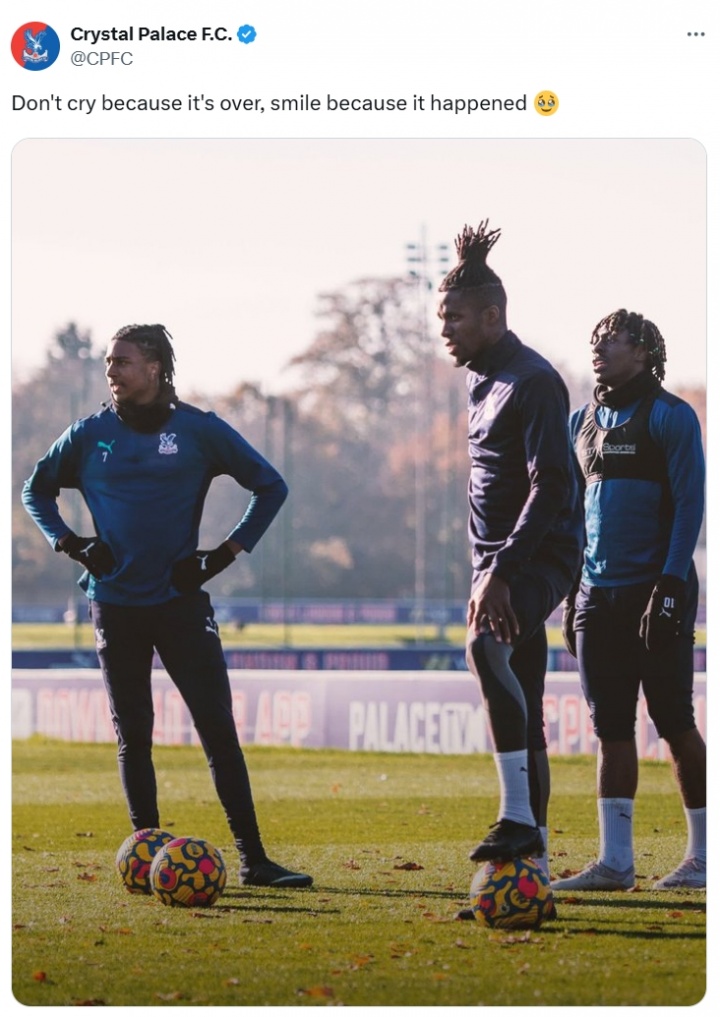 水晶宫官方晒过去奥利塞-扎哈-埃泽三东说念主组同框图:别因为它截止而哽咽,要为它曾存在过而浅笑🥹 |