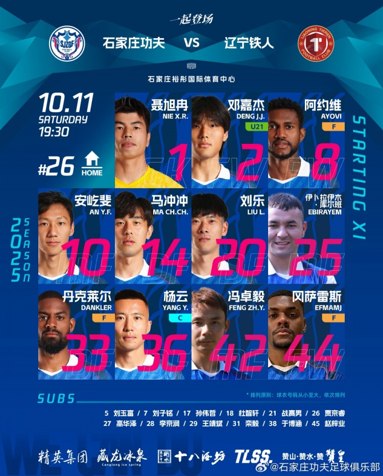 📝石家庄功夫主场对阵辽宁铁东说念主首发名单! ⚽️丹克莱尔转头,聂旭冉首发!李学博受伤,徐俊驰备战全运会未能过问大名单。 |