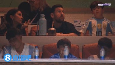 比赛焦点一霎: 镜头给到在看台上的梅西。↓