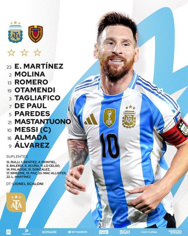 体坛周报全媒体报说念 世初赛南好意思区第17轮,依然锁定头名出线的阿根廷镇守主场,迎战积分榜第7有望得到附加赛履历的委内瑞拉。梅西本场首发出战,锋线搭档、马斯坦托诺和阿尔马达四重奏。 ![]() 第4分钟,马斯坦托诺直塞,阿尔马达传中,阿尔瓦雷斯射门被门将挡出。 ![]() 第5分钟,阿根廷左路战略角球,马斯坦托诺传中,后点头球破门,但越位在先无效。 ![]() 阿根廷威望(4231):迪布·/莫利纳、克里斯蒂安·罗梅罗、奥塔门迪、塔利亚菲科/德保罗、帕雷德斯/马斯坦托诺、梅西、阿尔马达/阿尔瓦雷斯 |