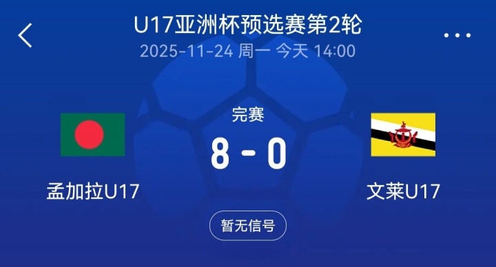 11月24日讯 在刚甩手的一场U17亚洲杯预选赛中,孟加拉U17 8-0大捷文莱U17,这两支球队是国少的同组敌手,现在孟加拉U17两战全胜进13球丢0球。 国...